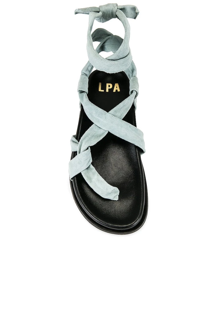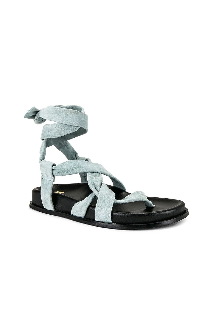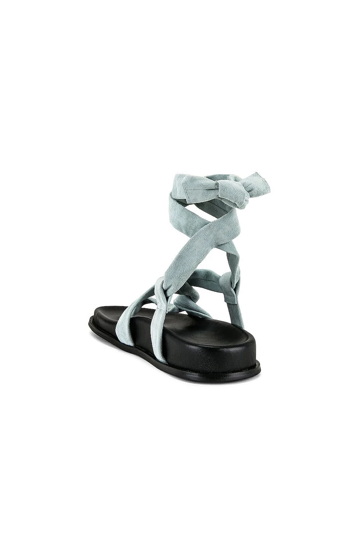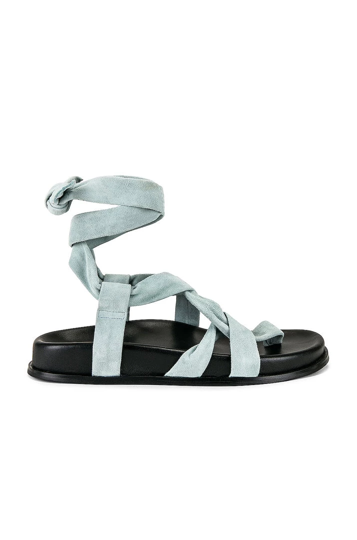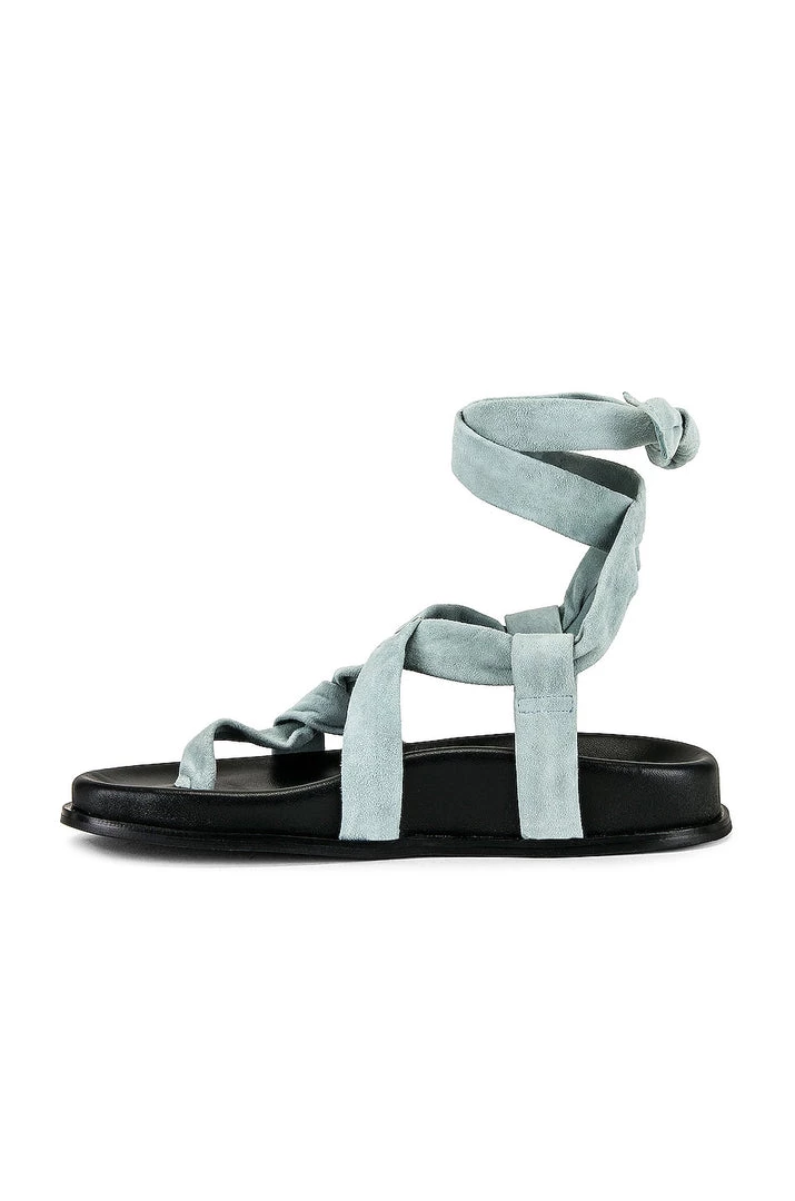 - Wrapped ankle strap with tie closure